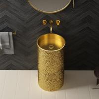 حوض حمام بقاعدة واحدة من الفولاذ المقاوم للصدأ ذهبي قائم بقاعدة واحدة لغسيل الحمام بدون صنبور للمنزل والفندق